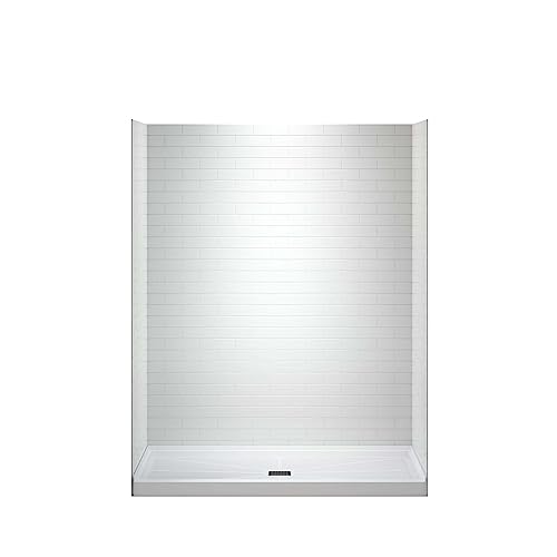 ? [COMBO KIT INCLUDES]: Kit includes a piece of 60 in. x 75 in. back wall panel, two pieces of 32 in. x 75 in. side panels, and a piece of 60 in. x 32 in. Single Threshold Shower Base in White features a Center drain, Matte Black Drain Cover