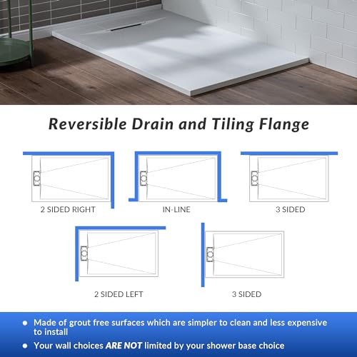 ? [REVERSIBLE DRAIN AND TILING FLANGE]:shower base can accommodate to a left or right-handed drain and the integrated tiling flange ensures no leaks will come between the shower base and walls, giving you peace of mind.