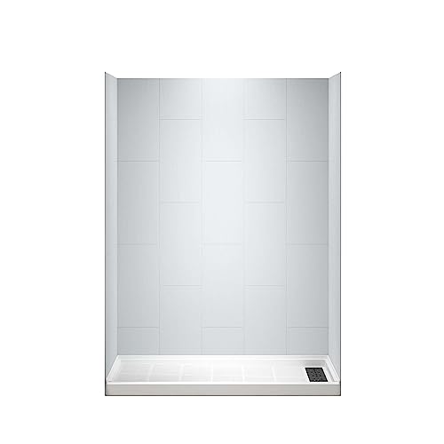 ? [COMBO KIT INCLUDES]: Kit includes a piece of 60 in. x 75 in. back wall panel, two pieces of 36 in. x 75 in. side panels, and a piece of 60 in. x 36 in. Single Threshold Shower Base in White features a Right drain, Matte Black Drain Cover