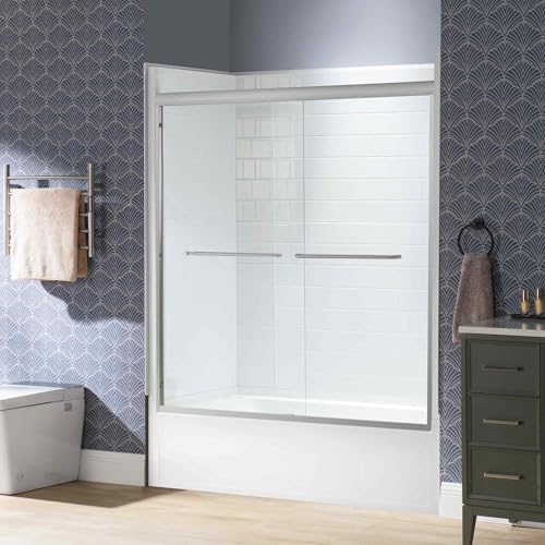 Woodbridge Double Sliding Shower Door 56-60" Width x 72" Height with 1/4"(6mm) Clear Tempered Glass in Brushed Nickel Finish