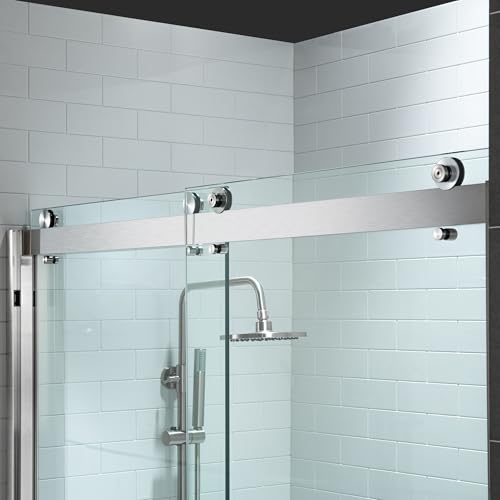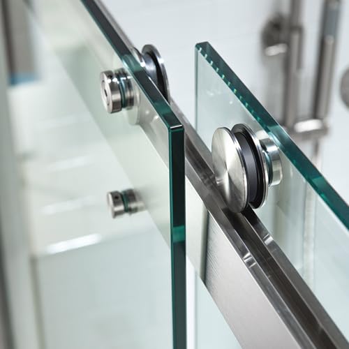 ? [HIGH QUALITY MATERIAL]: 3/8"(10mm) thick tempered safety glass with ANSI Z97.1 certified, for easy cleaning and to resist water spots; Large solid stainless steel rollers creating a quiet, smooth and effortless sliding
