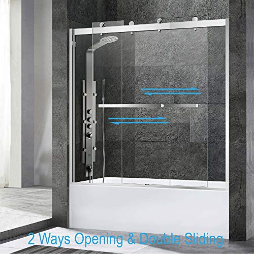 [DUAL WAYS OPENING AND DOUBLE SLIDING]: Frameless design shower door makes your bathroom more modern and brighter, also convenient to slide. Both doors can be moved and the switch is more convenient.