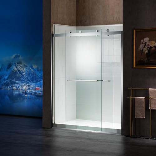 ? [HIGH QUALITY MATERIAL]: 3/8"(10mm) thick tempered safety glass with ANSI Z97.1 certified, for easy cleaning and to resist water spots; Large solid stainless steel rollers creating a quiet, smooth and effortless sliding