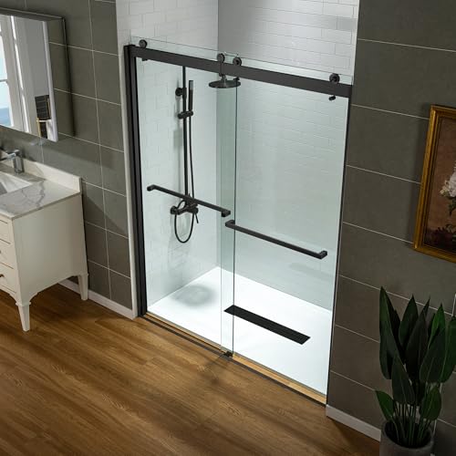 WOODBRIDGE Frameless Shower Doors 56-60" Width x 76" Height with 3/8"(10mm) Clear Tempered Glass, 2 Ways Opening & Double Sliding in Matte Black Finish