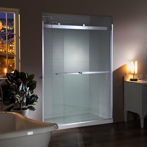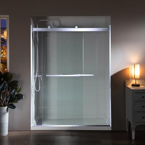 ? [HIGH QUALITY MATERIAL]: 5/16"(8mm) thick tempered safety glass with ANSI Z97.1 certified, for easy cleaning and to resist water spots; Large solid stainless steel rollers creating a quiet, smooth and effortless sliding