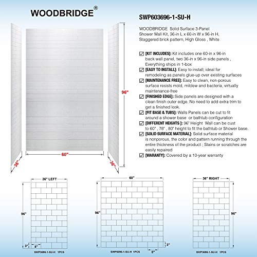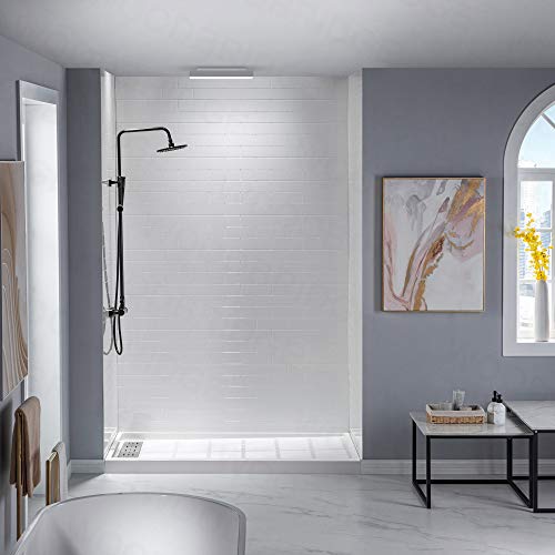 ? [MAINTENANCE FREE]: High gloss white provide a smooth, shiny and reflective look and is easy to clean; Non-porous solid surface shower wall panels provide a sleek, streamlined look that makes maintenance a breeze, with no unsightly grout lines in which mold and mildew can hide