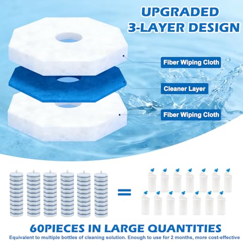 ?60-Count Value Pack & Ready in Seconds?With 60 disposable refills in one box, you clean longer and buy less, ideal for families, rentals, and frequent bathroom use. Simply soak the pad for 2–3 seconds to activate the cleaner, and it’s ready to scrub instantly.