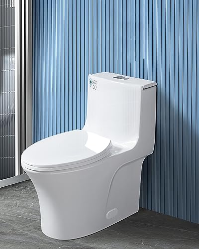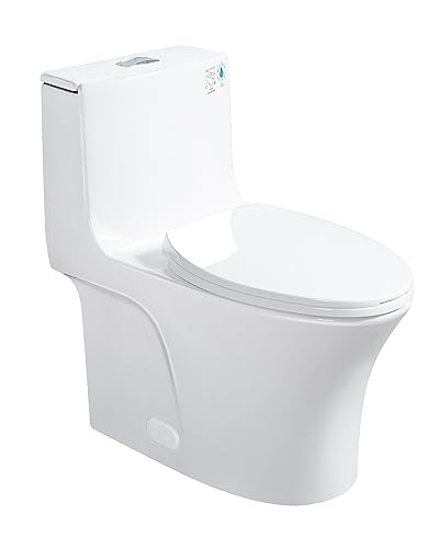 ?Compact & Stylish Design?Toilet Dimensions: 28.54" x 15.16" x 28.74", Ideal for small bathrooms and apartments. The seamless one piece toilet and chrome accents add a modern flair.