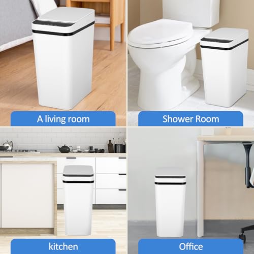 ?Sleek Design, Universal Appeal? Featuring a minimalist yet stylish design, the sleek white exterior and slim profile seamlessly blend into bathrooms, offices, bedrooms, living rooms, and more, serving not just as a functional trash bin but also as an elegant addition to your home decor.